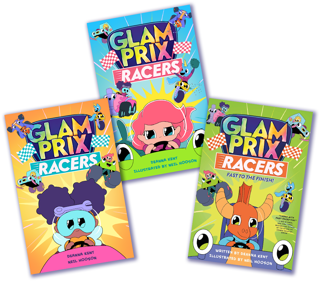 "…Kent’s quirky dialogue provides laughs while Hooson’s cartoon artwork bursts with energy; together, the previous collaborators (the Snazzy Cat Capers series) blend the colorful, high-octane world of race car driving with a candy-coated lesson in friendship and perseverance." ―Publishers Weekly